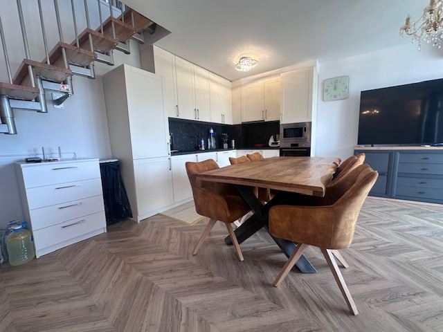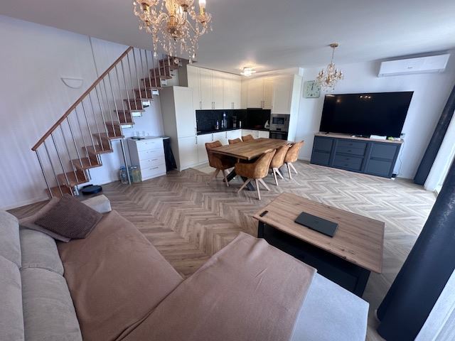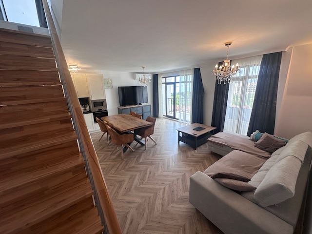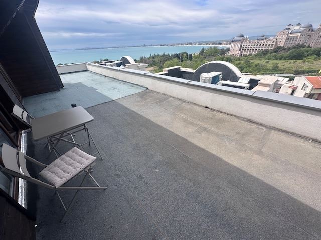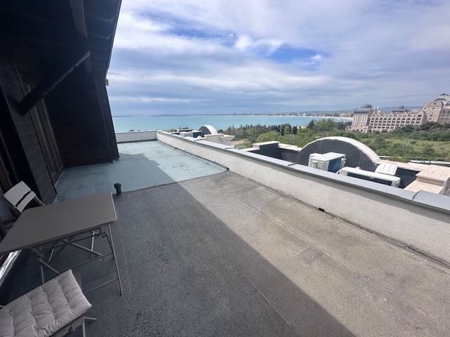 We present you a unique duplex apartment located in the picturesque resort of Sveti Vlas, offering exceptional comfort and luxury on the Black Sea coast. This spacious penthouse, located on the 7th floor, provides the unique opportunity to enjoy enchanting sea panoramas directly from the comfort of your new home. With a total area of 110,29 m², this property impresses with its functional layout and elegant interior. On the first level there are two cosy bedrooms, a spacious living room with dining area and a fully equipped kitchen, as well as a bathroom. Two of the property's four terraces offer magnificent sea views, creating the ideal setting for relaxation and recreation.