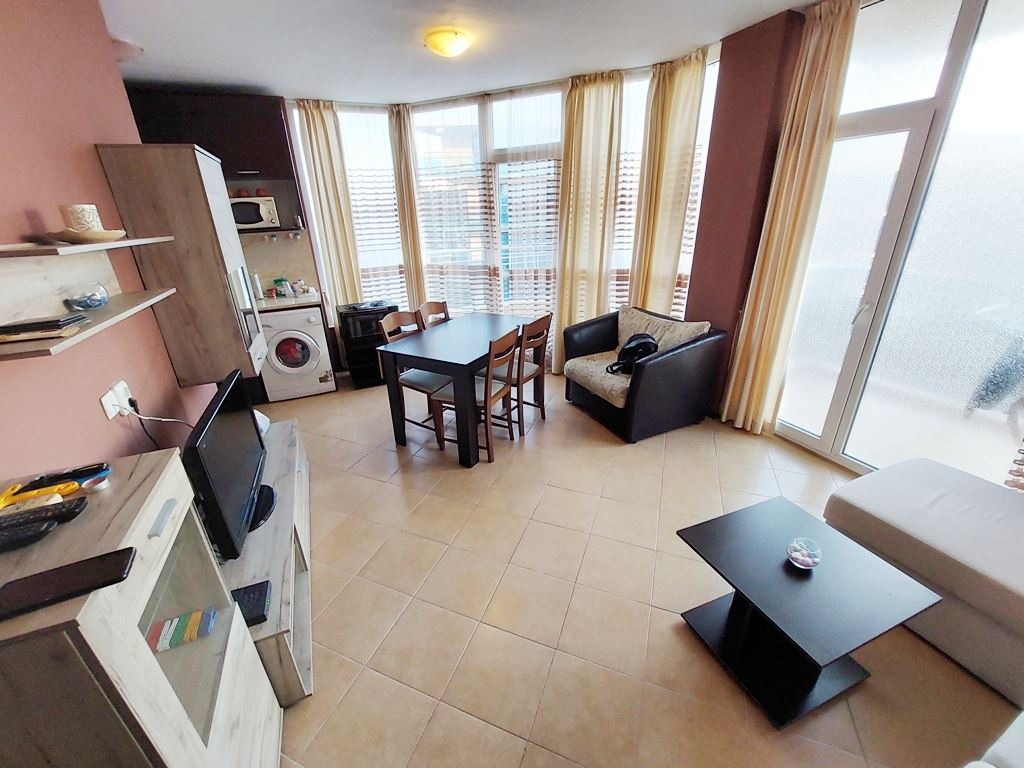 Stylish and cozy one-bedroom apartment 500 meters from the beach in the resort of Sunny Beach. The complex is located near the center of the resort. The apartment is located on the fourth floor and its area is 64 m2. Modern high-quality furniture and appliances are included in the cost of housing. Complex infrastructure includes a reception, a large swimming pool for adults and children, store, cafe, playground, car parking. The territory of the complex has been improved, landscaped by landscape designers, guarded 24 hours a day. All necessary infrastructure is within walking distance: stores, supermarkets, restaurants, cafes, bars, discos, bus stop, currency exchange.