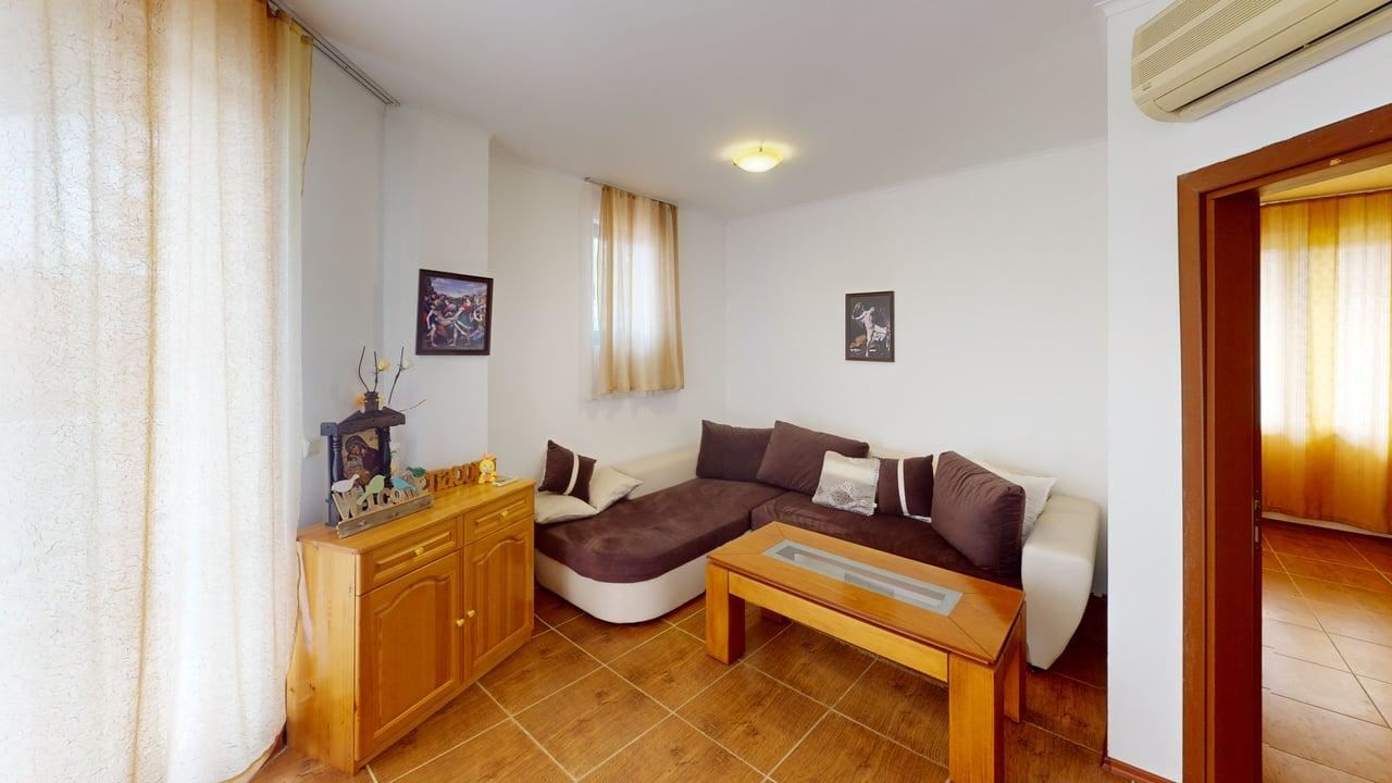 This large one-bedroom apartment in the Sunny Beach area is an excellent choice for those seeking peace and comfort in a complex with a wide range of amenities. With a total area of 82 m², the apartment offers generous space and comes fully furnished, including a living room with kitchen, a spacious bedroom, bathroom with WC, and a large terrace with views of the sea and the complex.