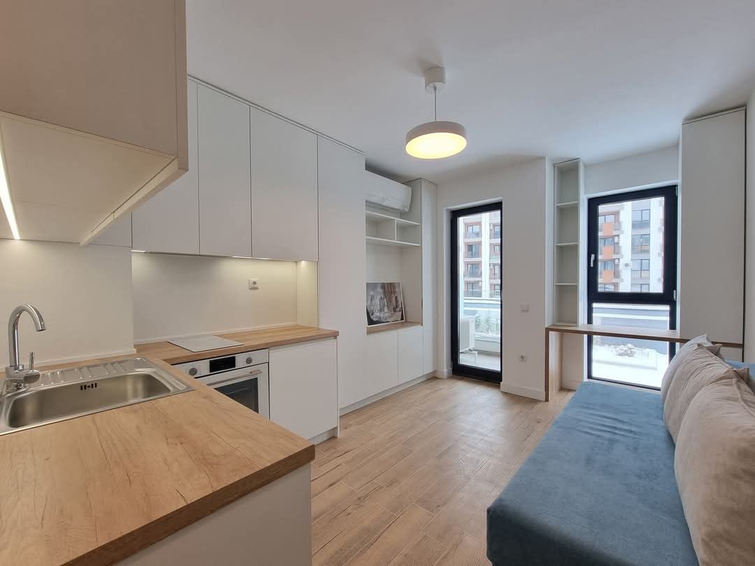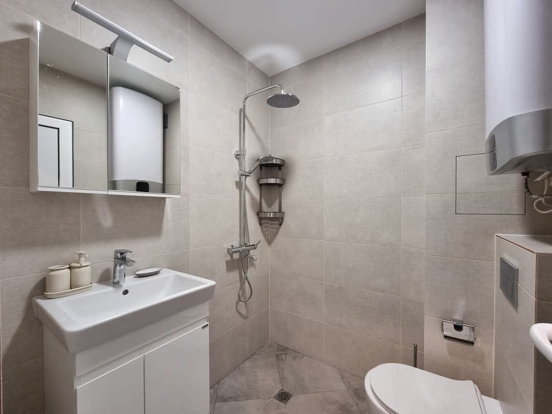 For sale is a unique one-bedroom apartment in the heart of Sofia, with an extremely comfortable and modern concept. The property offers 65 sq.m. of style and comfort. The apartment is divided into two mirrored studios, each with its own entrance from a common corridor. Each studio includes a spacious room with elegantly designed areas for kitchen, small dining area and work area, with high quality furnishings and modern appliances. There are also two bathrooms and two terraces which add to the comfort and functionality of the space.